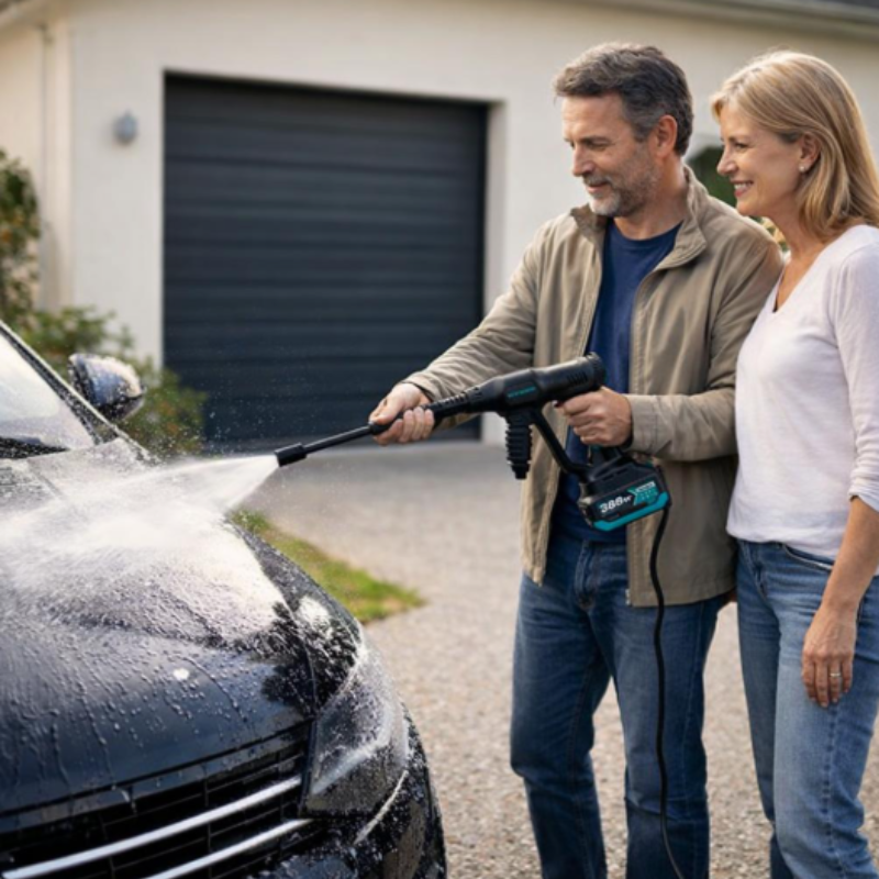 Contrairement aux modèles décevants, notre nettoyeur offre une pression stable et suffisante pour nettoyer terrasses, dalles et véhicules sans effort ni perte de temps.