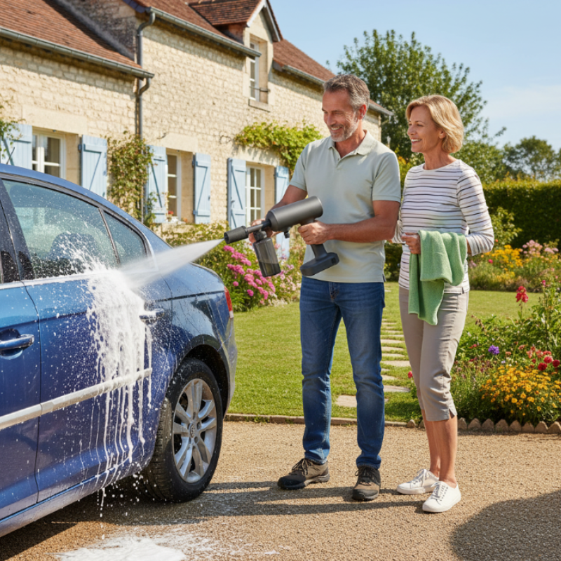 Contrairement aux modèles décevants, notre nettoyeur offre une pression stable et suffisante pour nettoyer terrasses, dalles et véhicules sans effort ni perte de temps.